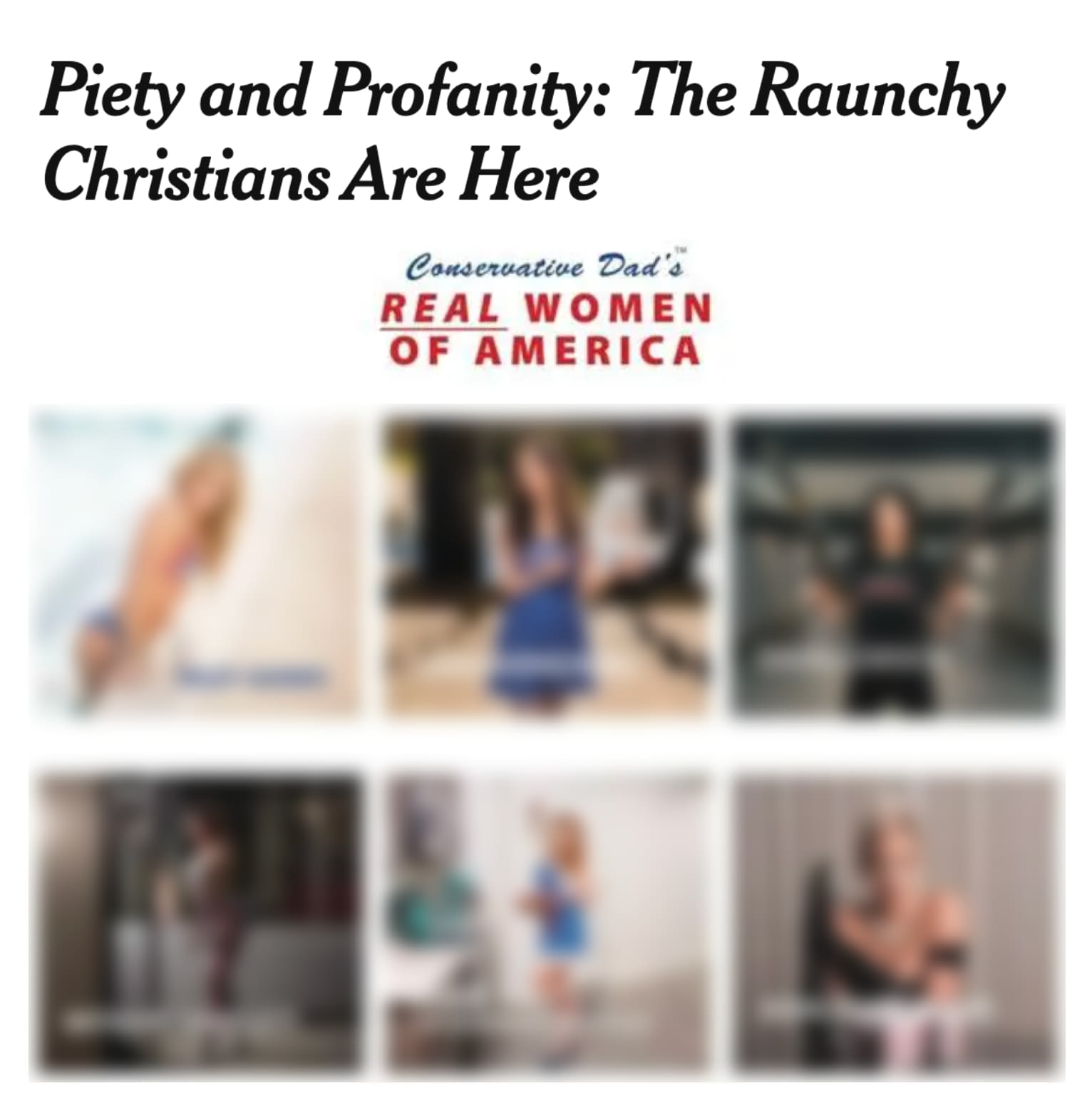 The New York Times recently published an article called Piety and Profanity: The Raunchy Christians Are Here, which began by citing a recent calendar that was released by a “woke-free beer” called the “Conservative Dad’s Real Women of America” calendar (see below). It featured old-school pinup images, including famous conservative Christian women in bikinis and bubble baths. One image features a crucifix hanging prominently on the kitchen wall behind a woman in a tiny skirt, apron, and platform heels.