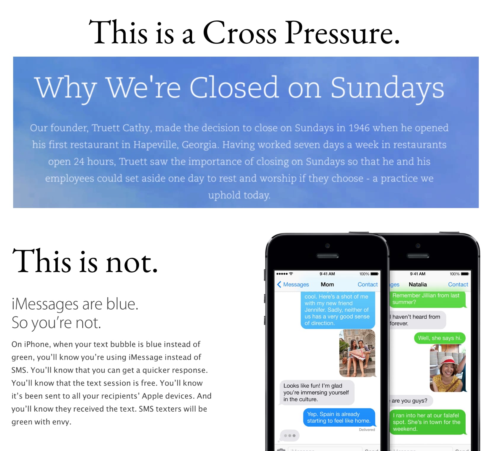 Why is Chick-fil-A closed on a Sunday? Because their founder and leadership understand that honoring God is more important than their bottom line. And this doesn’t just show up on Sundays. This is everywhere, from employee benefits to customer service to corporate responsibility.