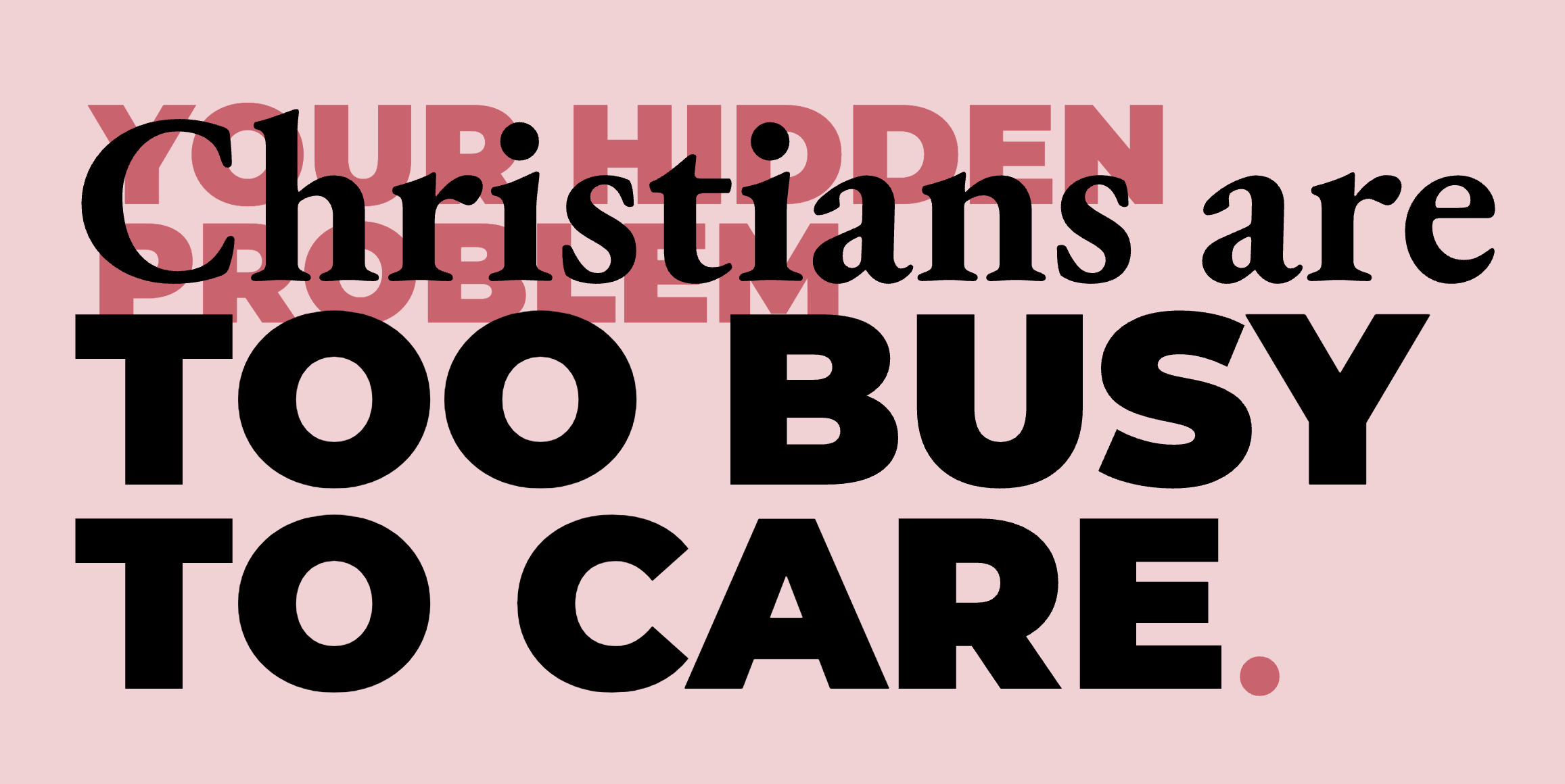 One could argue that it’s because love is incredibly time-consuming. And Christians are just too busy to care. They’re too busy to read emails. They’re too busy to read the mail. They’re too busy to Sabbath or get dressed for church when they can tune in online instead. They’re too busy to watch a video over 30 seconds long (but strangely not busy enough to binge-watch 6 hours of trashy TV on the weekend).