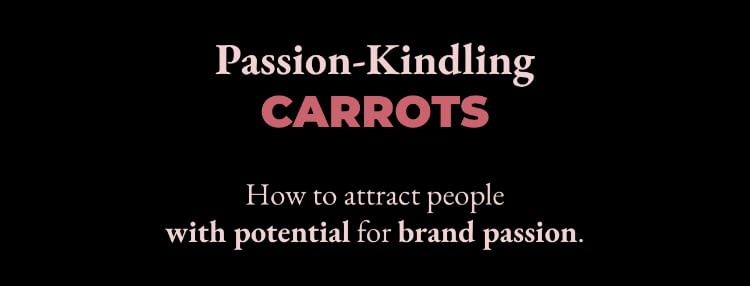 The goal of these carrots is to attract people who could be passionate about you and your cause. This doesn’t guarantee passion, but getting these elements into your brand experiences can be a great place to start.
